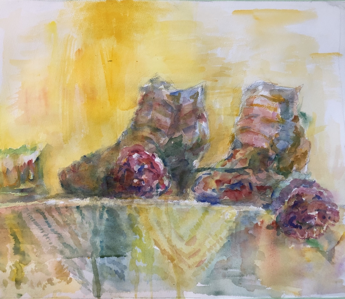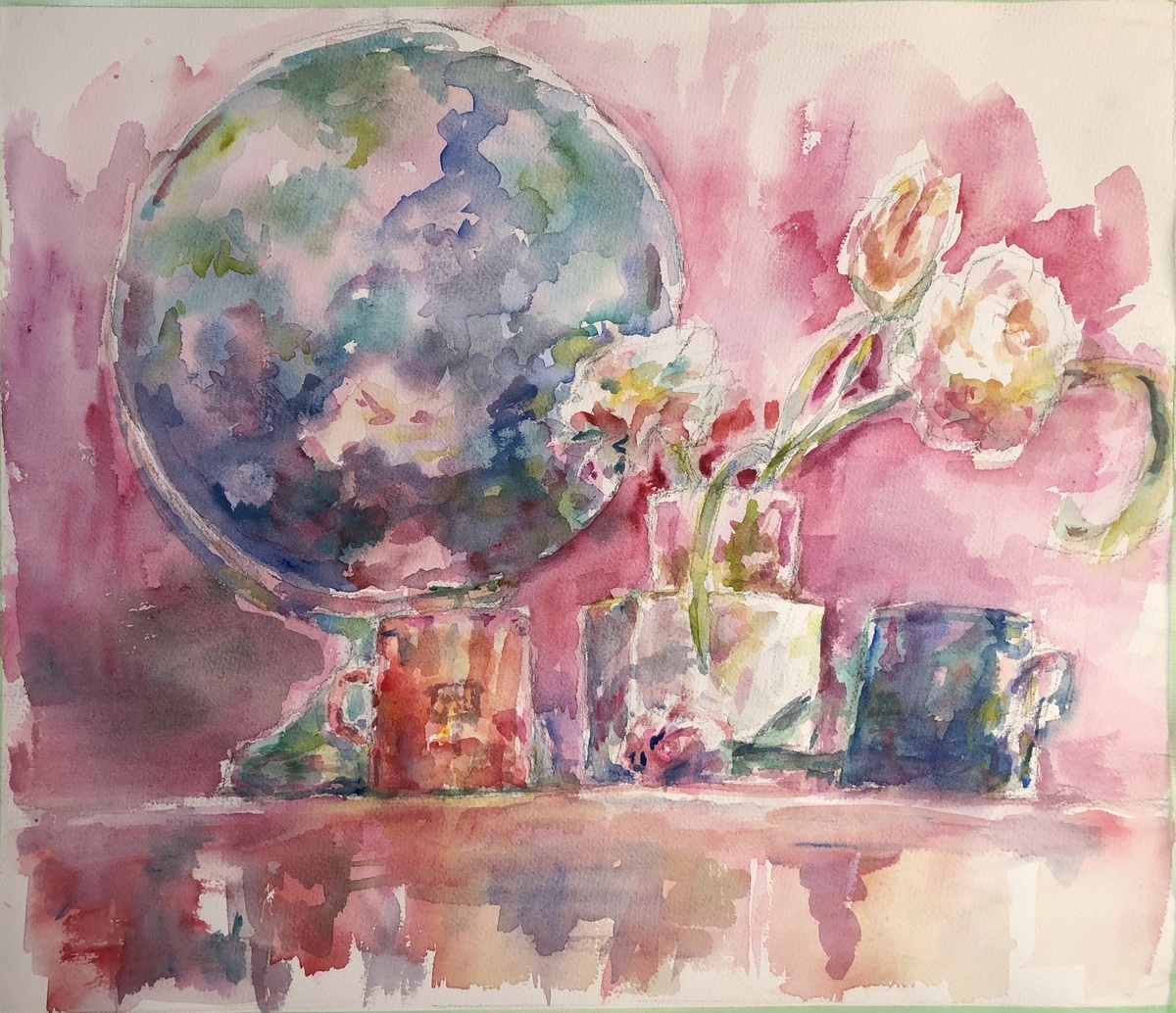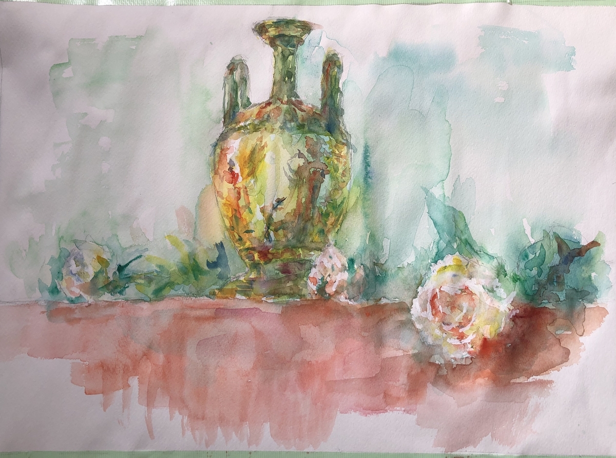 永山裕子先生のNHKオンライン水彩講座、今回の課題は目の高さでの静物ということで描いてみました。