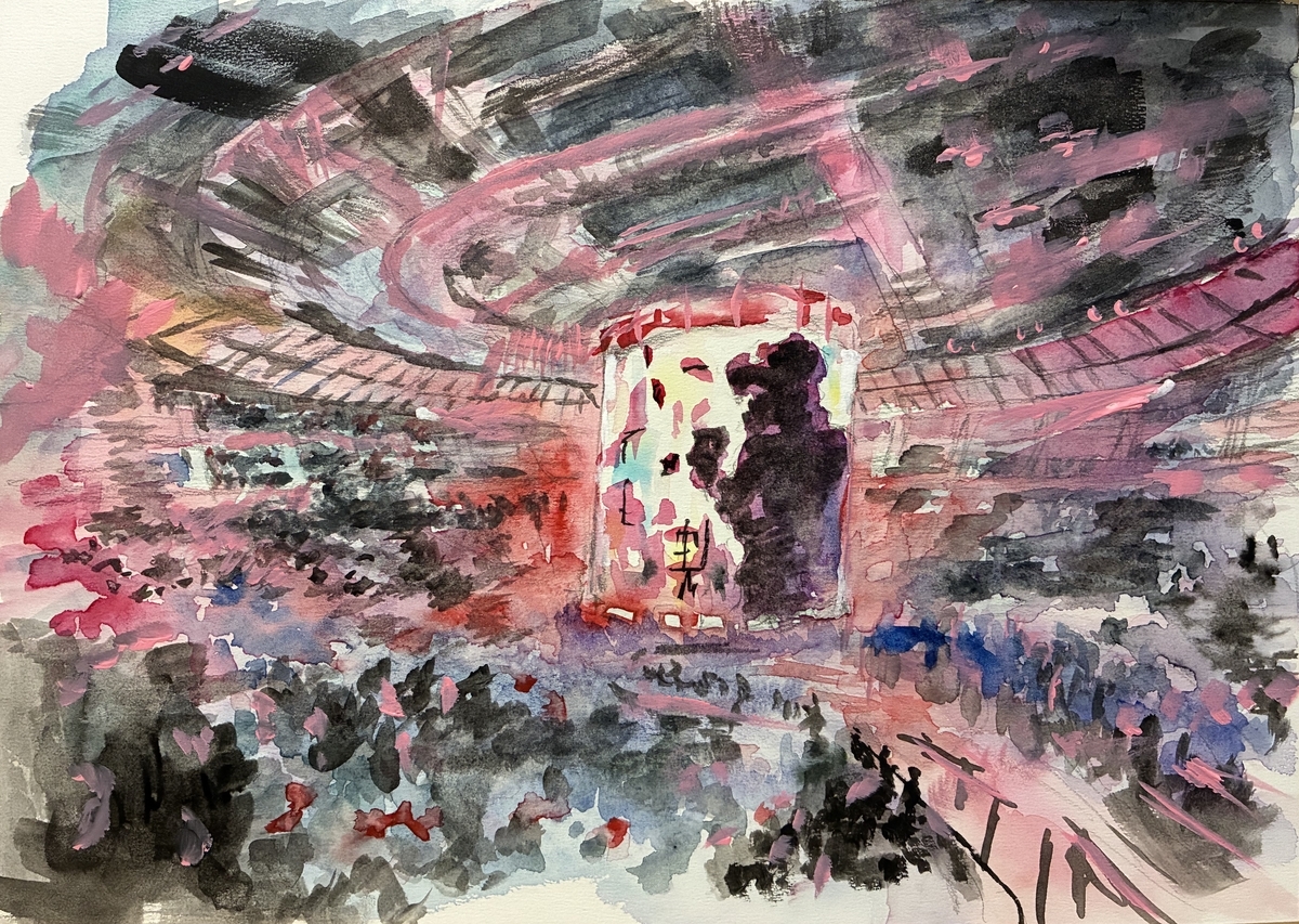 水彩とアクリルで描いてみました!空間を描くの大変だけど楽しいっ!